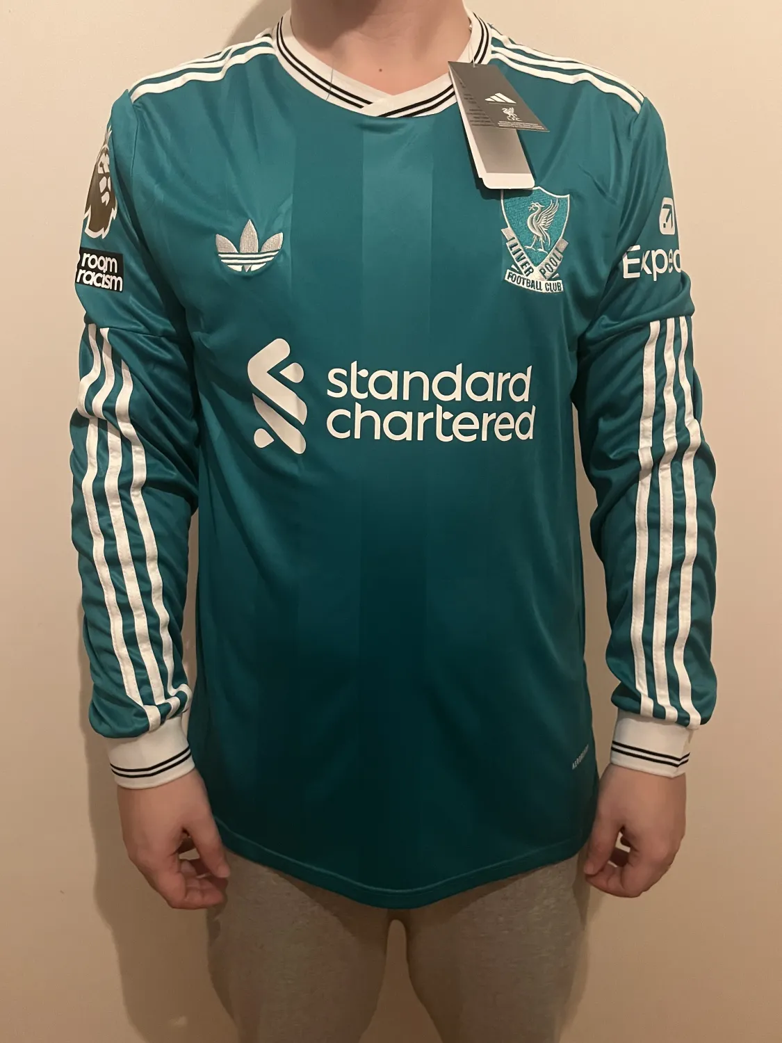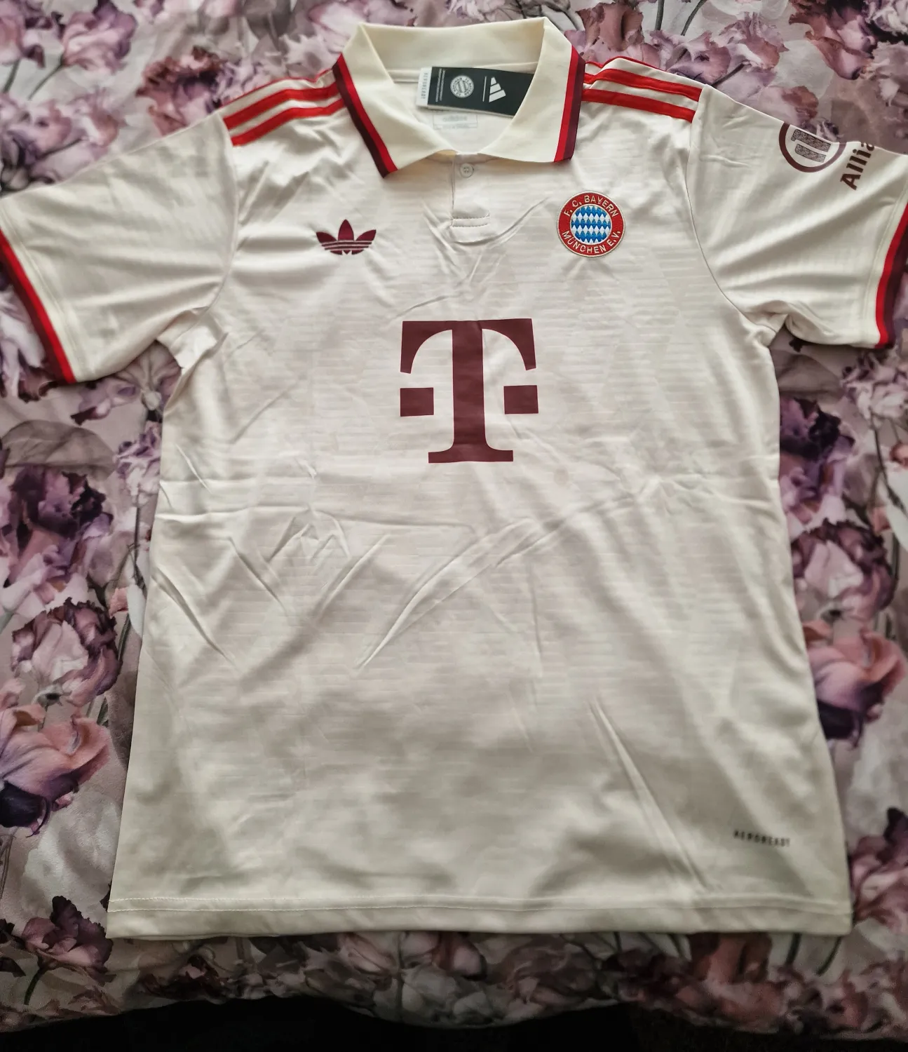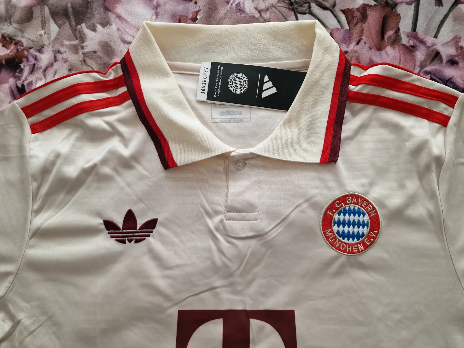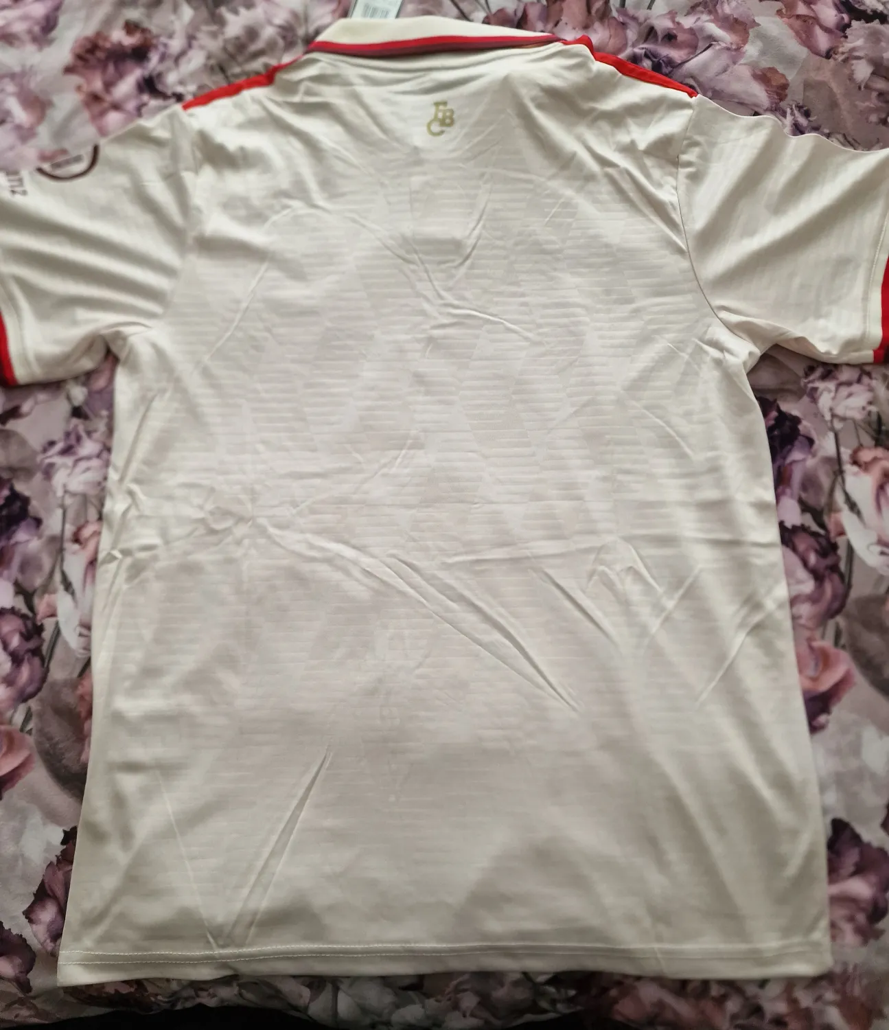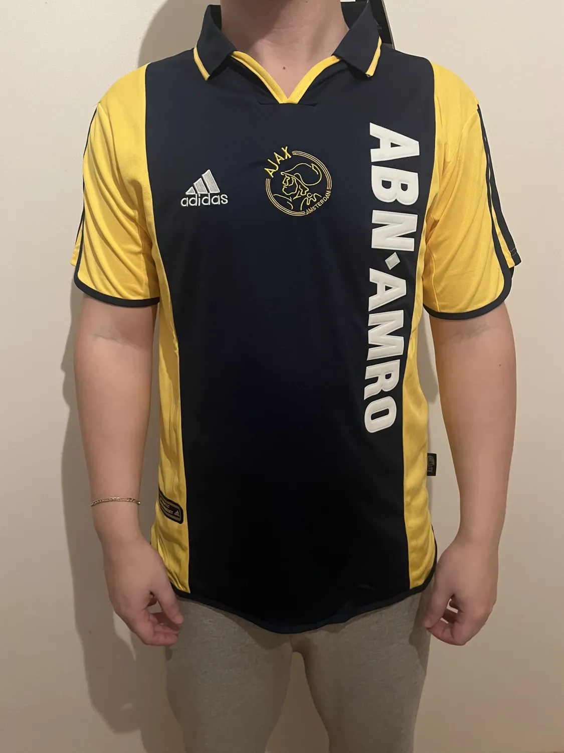 It fits really nice. Really love the embroidered logo of Ajax and Adidas. ABN AMRO (Dutch bank) is not sewn-on, should be heat pressed - very thick material. Collar does not choke, feels really nice + there is nice detail on back of collar. 10/10